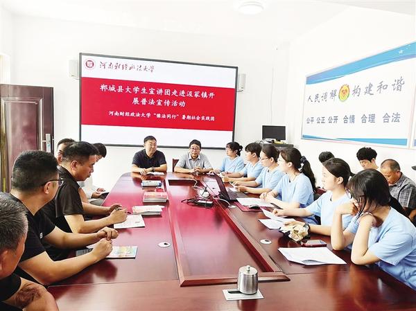 本報訊 (記者 徐松 通訊員 邢佰強 翟玥 趙坤哲 文/圖) 為推動法治鄉(xiāng)村建設(shè),7月11日,鄲城縣委宣傳部和縣司法局組織法律專業(yè)大學(xué)生成立宣講團,到汲冢鎮(zhèn)開展普法宣傳活動。大學(xué)生志愿者走進田間地頭,把“法言法語”化為“鄉(xiāng)音鄉(xiāng)語”,為法治鄲城建設(shè)注入了青春活力。