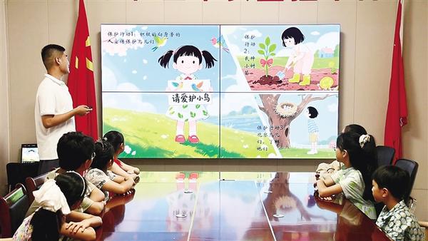 返鄉(xiāng)大學(xué)生志愿者魏柏宇向孩子們介紹珍稀鳥類的外形特征、生活習(xí)性與生存現(xiàn)狀。近日,鄲城縣自然資源局組織工作人員、返鄉(xiāng)大學(xué)生志愿者到該縣新城街道秀水社區(qū)開辦科普課堂,旨在通過生動講解與互動實(shí)踐,深化社區(qū)青少年對生態(tài)保護(hù)的認(rèn)識。記者 徐松 通訊員 陳吳陸 攝