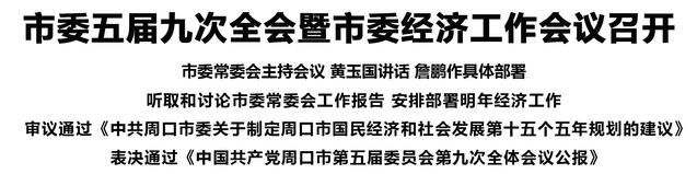 本報訊 (記者 王艷 李鳳霞 王晨) 12月28日,中國共產(chǎn)黨周口市第五屆委員會第九次全體會議暨市委經(jīng)濟工作會議召開。