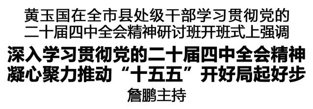 本報(bào)訊(記者 王艷 劉昂) 3月23日,全市縣處級(jí)干部學(xué)習(xí)貫徹黨的二十屆四中全會(huì)精神研討班開班式在市委黨校舉行。市委書記黃玉國(guó)出席并作動(dòng)員講話,強(qiáng)調(diào)要聚焦黨的二十屆四中全會(huì)精神和習(xí)近平總書記在省部級(jí)主要領(lǐng)導(dǎo)干部專題研討班上的重要講話精神,集中研學(xué)、深入研討,凝心聚力推動(dòng)“十五五”開好局起好步,奮力譜寫中原大地推進(jìn)中國(guó)式現(xiàn)代化周口新篇章。市長(zhǎng)詹鵬主持。