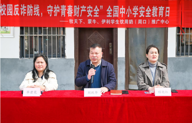 2026年3月31日上午,在全國(guó)中小學(xué)安全教育日來(lái)臨之際,由牧天下、蒙牛、伊利學(xué)生飲用奶(周口)推廣中心主辦的“筑牢校園反詐防線,守護(hù)青春財(cái)產(chǎn)安全”反詐安全教育主題活動(dòng)在項(xiàng)城市花園辦事處鄭埠口小學(xué)舉行?;▓@辦事處轄區(qū)民警鄺柯柯出席活動(dòng),花園辦事處中心校校長(zhǎng)劉躍華,鄭埠口小學(xué)校長(zhǎng)程艷紅、副校長(zhǎng)畢君花,牧天下、蒙牛、伊利學(xué)生飲用奶(周口)推廣中心副總經(jīng)理何俊濤、(項(xiàng)城)推廣中心市場(chǎng)經(jīng)理劉璐及鄭埠口小學(xué)師生代表參加。