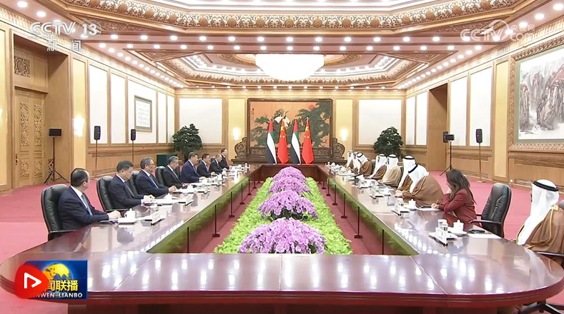 4月14日上午,國家主席習(xí)近平在北京人民大會(huì)堂會(huì)見來華訪問的阿聯(lián)酋阿布扎比王儲(chǔ)哈立德。