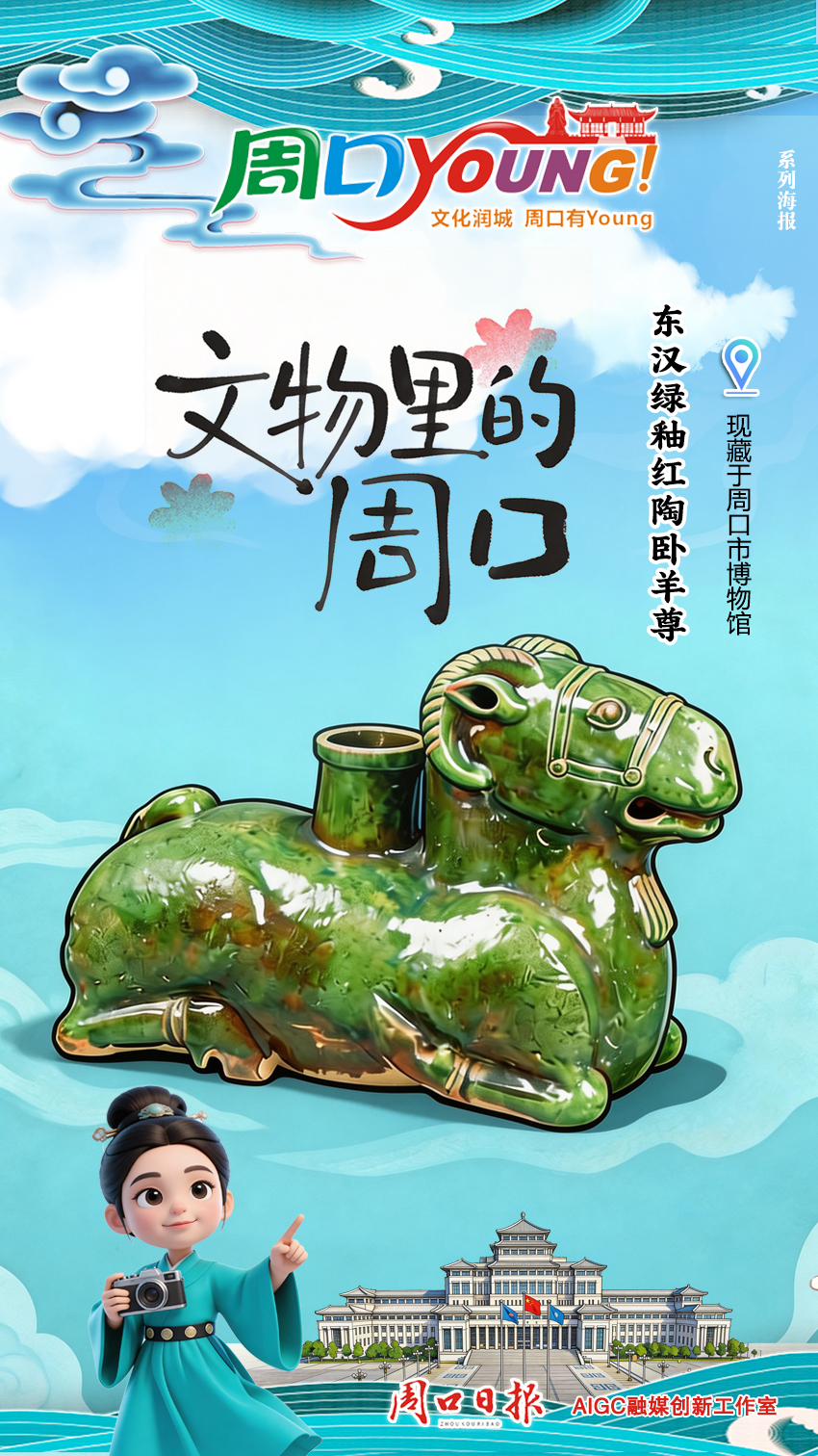 【文物里的周口】東漢綠釉紅陶臥羊尊