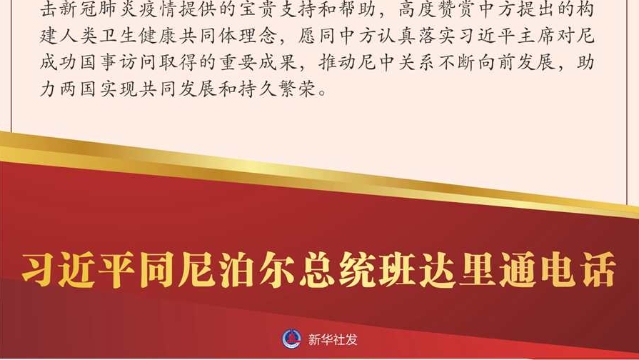 習(xí)近平指出,新冠肺炎疫情發(fā)生后,中尼兩國堅(jiān)定支持彼此抗疫努力,深入開展抗疫合作,彰顯了守望相助、同舟共濟(jì)的精神?!?a href="http://m.13311315375.com/content/2021-05/28/content_936685.html" target="_blank" >[詳細(xì)]
