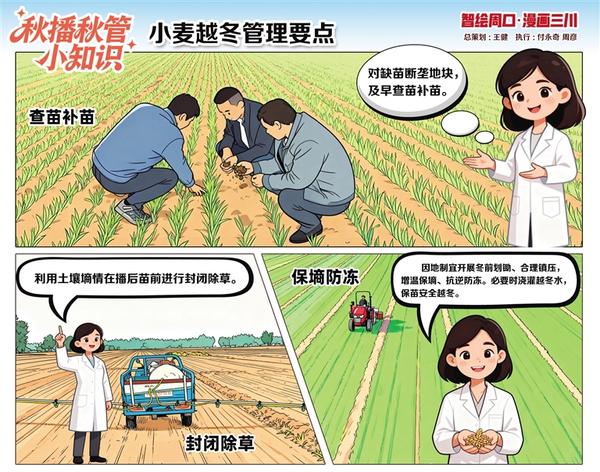 小麥進入越冬管理關(guān)鍵期后,專家建議:一是查苗補苗,對缺苗斷壟地塊及時補苗;