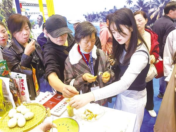 群眾在品嘗“唐橋鴨蛋”。近日,在第十二屆中原文化產(chǎn)業(yè)博覽交易會上,鄲城縣非遺產(chǎn)品“唐橋鴨蛋”榮獲展覽展示獎。該產(chǎn)品由閆振宇、閆路父女傳承推廣,此次獲獎?wù)蔑@了傳統(tǒng)技藝在現(xiàn)代的創(chuàng)新活力。