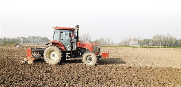 11月9日,在淮陽(yáng)區(qū)高標(biāo)準(zhǔn)農(nóng)田示范區(qū),一臺(tái)東方紅拖拉機(jī)牽引著復(fù)式播種機(jī)在地里穿梭。
