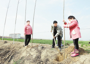 左圖 昨日,扶溝縣大李莊鄉(xiāng)高河沿村的群眾正在植樹(shù)。植樹(shù)節(jié)來(lái)臨之際,該縣各鄉(xiāng)鎮(zhèn)切實(shí)抓好以查漏補(bǔ)缺為主的植樹(shù)造林和美麗鄉(xiāng)村綠化工作,扎實(shí)有序推進(jìn)生態(tài)縣建設(shè)。(黃金峰 周運(yùn)動(dòng) 攝)