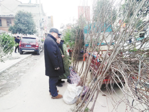 上圖 昨日上午,一位市民正在挑選果樹(shù)。又是一年春來(lái)到,眾多市民紛紛趁早春時(shí)節(jié)種植樹(shù)木。