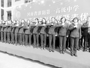 3月21日,淮陽(yáng)一高舉行 “高考百日沖刺”誓師大會(huì)。校長(zhǎng)王業(yè)生及高一、高二、高三年級(jí)全體師生參加了會(huì)議。青年教師代表付士翔、家長(zhǎng)代表張鳳啟及學(xué)生代表分別進(jìn)行了充滿激情的發(fā)言。在距2015年高考還有100天的日子里,師生莊嚴(yán)宣誓:“以頑強(qiáng)的意志、百倍的激情、無(wú)窮的潛力,以最刻苦的精神、最堅(jiān)韌的毅力,全力以赴,奮勇?tīng)?zhēng)先,爭(zhēng)分奪秒,苦戰(zhàn)百日,決戰(zhàn)高考,誓創(chuàng)輝煌?!?豆紀(jì)鋒 攝)