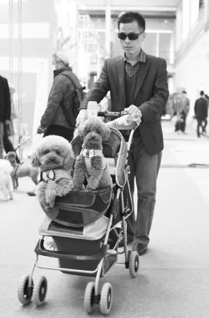 2015中國(北京)寵物文化節(jié)開幕 4月11日,兩只泰迪犬坐在兒童車?yán)铩.?dāng)日,為期三天的2015中國(北京)寵物文化節(jié)在北京蟹島國際會展中心開幕。本屆寵物文化節(jié)包括“王牌寵物課堂”“第7屆WCF國際純種貓展”“中國純種犬——北京冠軍展”等多個(gè)主題活動(dòng)。 新華社發(fā)