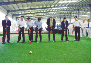 本報(bào)訊 (記者 李鳳霞 宋馨 沈湛 文/圖) 5月5日上午,“中國(guó)體育彩票杯”河南省第十二屆老年人體育健身大會(huì)門(mén)球交流活動(dòng)在周口體育中心門(mén)球館舉行。省老年體協(xié)主席馬憲章,省體育局局長(zhǎng)張文深,市委書(shū)記、市人大常委會(huì)主任徐光,市長(zhǎng)劉繼標(biāo),正市長(zhǎng)級(jí)干部李紹彬,市人大常委會(huì)副主任、市老年體協(xié)主席游保峰,省老年體協(xié)副主席王瑋等領(lǐng)導(dǎo)共同為活動(dòng)開(kāi)球(如圖)。