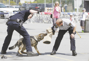 加拿大迎來全國警察周      5月9日, 在加拿大溫哥華地區(qū)的素里市,警察在警局開放日活動上向民眾示范警犬訓(xùn)練情況。為迎接一年一度的全國警察周,素里市皇家騎警總部當(dāng)日舉辦開放日活動,向民眾展示警方裝備及介紹警隊日常工作。新華社發(fā)