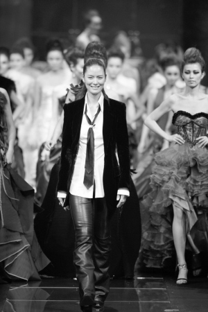 在模特生涯中,她打交道最多的就服裝設計師,他們?yōu)樗矿w裁衣,設計出一款款令人贊嘆的霓裳羽衣,讓她在T臺上儀態(tài)萬方、光彩照人?!拔易顨J佩的就是那些幕后大師,希望能成為像他們那樣的人。”馬艷麗說, 1995年她獲得國際名模后,就萌生了做服裝設計師的念頭,“有了模特這樣一個經歷,我又多了一層對服裝設計的理解,我認為它將是我模特生涯的一個延續(xù),是可以干一輩子的事業(yè)?!?/P>