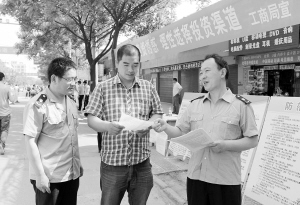 5月16日上午,扶溝縣工商人員向過(guò)往市民講解非法集資的危害。當(dāng)日,該縣處置非法集資領(lǐng)導(dǎo)組在縣城桐丘路舉辦打擊非法集資現(xiàn)場(chǎng)宣傳教育活動(dòng),各參加單位通過(guò)發(fā)放資料、現(xiàn)場(chǎng)咨詢等形式告知廣大市民拒絕參與非法集資。盧付昌 攝