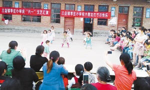 左圖 兒童節(jié)前夕,項(xiàng)城市積極組織小學(xué)、幼兒園開展慶“六一”活動(dòng),讓小朋友享受更多的歡樂和溫暖。圖為三店鎮(zhèn)李莊小學(xué)的孩子正在表演節(jié)目。(張永久 攝)