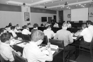 5月14日晚,周口農(nóng)行組織召開黨委中心組學(xué)習(xí)(擴(kuò)大)會議,集體學(xué)習(xí)《金融互聯(lián)網(wǎng)知識講座》、《黨建知識及上級行黨建工作有關(guān)要求》等內(nèi)容。圖為學(xué)習(xí)現(xiàn)場。(彭濤 攝)