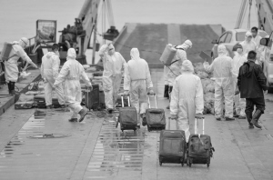 ?。箷r,交通運輸部部長楊傳堂宣布哀悼活動開始。在沉船救援現(xiàn)場仍在參與救援的所有人員停下手上工作,脫帽佇立,面向遇難船舶默哀,包括數(shù)十家媒體新聞工作者在內(nèi)的其他在場人員紛紛低頭,肅立致哀。同時,停泊在附近水域的所有船舶拉響鳴笛,途經(jīng)沉船救援現(xiàn)場的船只也放慢速度,鳴響汽笛。