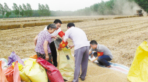 上圖:6月7日,商水縣鄧城鎮(zhèn)督查隊(duì)員在幫許村困難戶張翠蘭收麥子。三夏期間,該鎮(zhèn)成立16支三夏幫扶隊(duì)和督查隊(duì),深入田間地頭幫助困難戶夏收夏種。(喬連軍 攝)