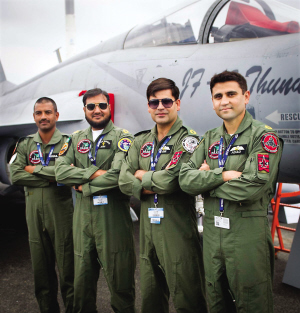 上圖:6月15日,在法國巴黎北郊布爾歇機場,“梟龍”戰(zhàn)機巴方飛行員、地勤人員等在機身旁留影。