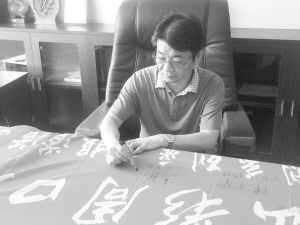 李志偉在“出彩周口人”彩旗上簽名。