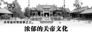周家口關帝廟的一大功用是會館,是商人們的沙龍之地。但既然打著關帝廟的旗號,自然少不了關帝文化的渲染。所以,廟內的重要內涵之一就是關公文化。關公從“當時義勇傾三國”的蜀漢名將,到“萬古祠堂遍九州”的神化、圣化偶像,是中國封建社會進入后期以來,社會各界對關公不斷美化、圣化和神化的結果。從宋元至明清的這一歷史過程中,上至高居廟堂的帝王將相,下至終生勞作的庶民百姓,從揮文弄墨的文人學子、舞槍弄劍的草莽義士到勾欄瓦舍中的說書藝人、遠避塵世的僧侶道士,幾乎都陸陸續(xù)續(xù)匯入了美化、圣化和神化關公的潮流。在這一浪高于一浪的關公崇拜浪潮中,從關公身上發(fā)掘出來的和被追加到關公身上的美德與美譽,遠遠超過了歷史上真實的關公,幾乎達到了無人可及而又無以復加的地步。于是,生活于三國時代的關公,在宋元明清之際,便漸漸地超凡脫俗,青云直上,由一個充滿悲壯色彩的人間英雄,變成了萬民禮拜的神圣偶像。所以,在關帝廟里,多有人們對關公的贊美楹聯,而這些楹聯也成為關帝廟關公文化的內蘊之一。