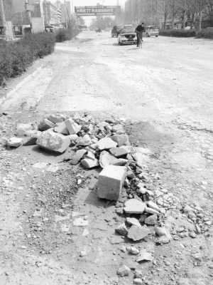 當(dāng)日,記者在現(xiàn)場(chǎng)看到,這里的路面坑坑洼洼(如圖),和半年前的情況一模一樣。記者還發(fā)現(xiàn),這段路上堆放著大量建筑垃圾,道路變得更加難行。
