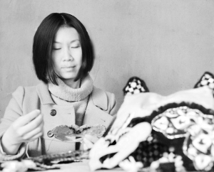 鹿邑的虎頭鞋、虎頭帽也是省級非遺項(xiàng)目,一名游客在現(xiàn)場學(xué)習(xí)制作時(shí),一時(shí)不知從哪兒下手。   ▲