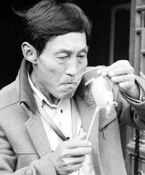 省級非遺項(xiàng)目滑縣馬氏吹糖人第十六代傳承人馬電坤現(xiàn)場表演吹糖人。